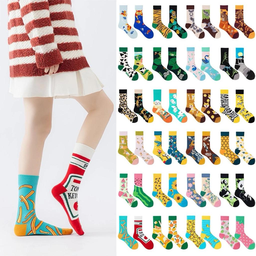 SMLSOX Summer Asymmetrical Mandarin Duck Couple Mid-Calf Colorful Christmas Cotton Fashion Socks