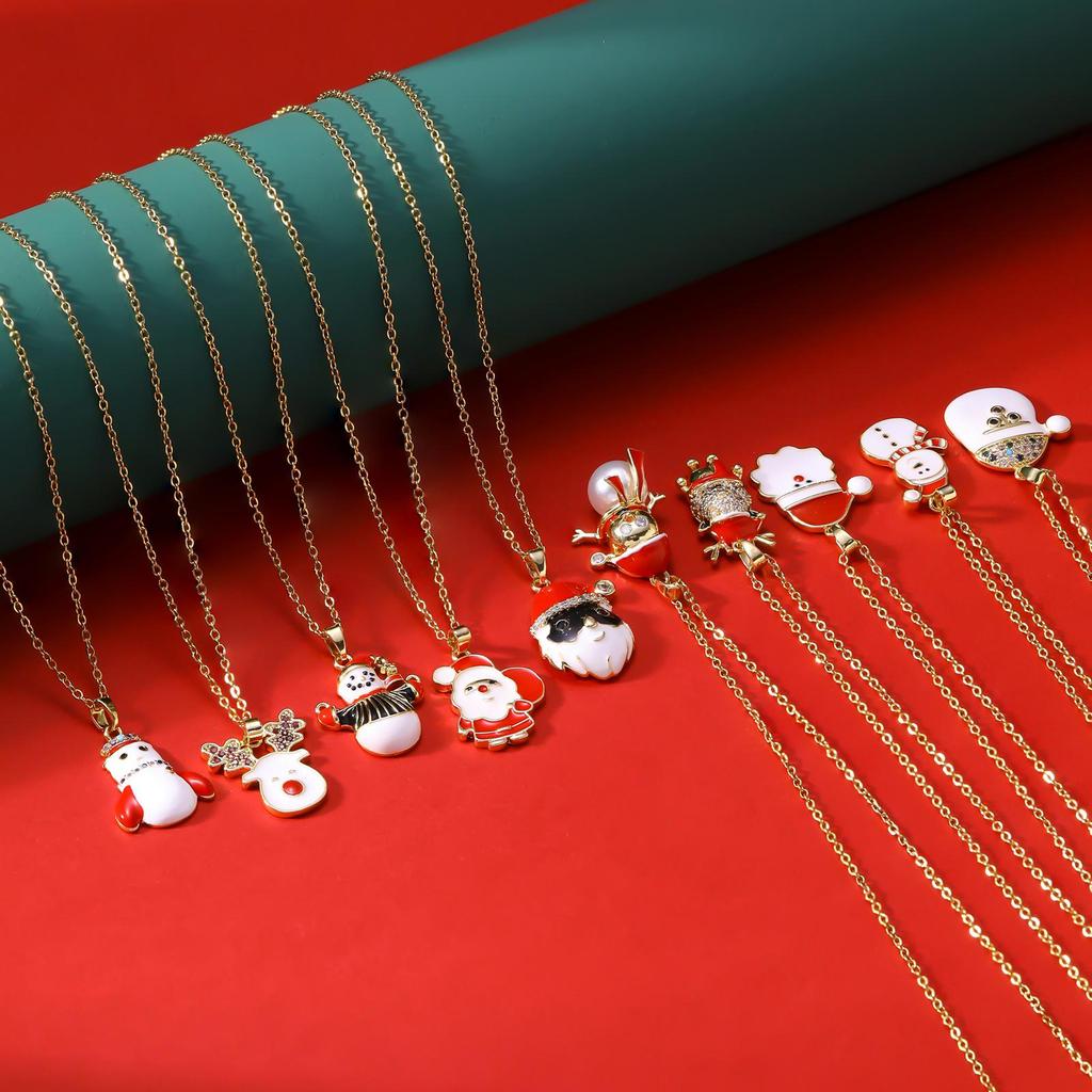 Santa Claus Rhinestone-Enamel Necklace: Light Luxury, Non-Fading Holiday Accessory for Women