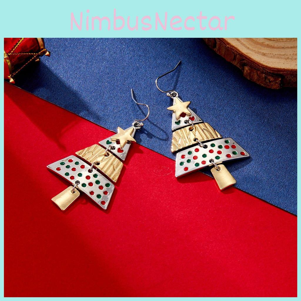Alloy Long Trendy Christmas Tree Earrings Featuring Vibrant Geometric Star Shapes For Celebrations