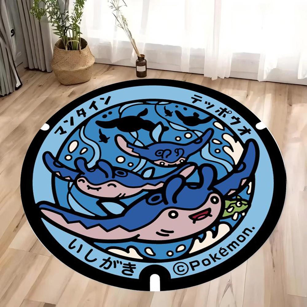 Cartoon Anime Pokémon Printed Round Carpet for Kid's Living Room Bedroom Decor Non Slip Floor Mat Bedroom Circle Rug