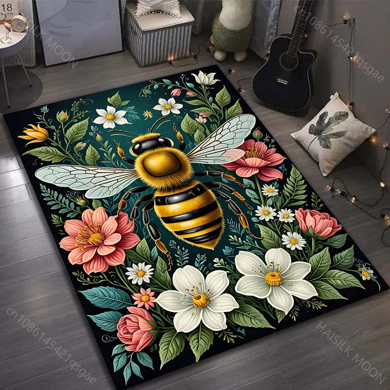 HD Bees and Flowers Print Carpet for Living Room Bedroom Bedside Sofa Table Floor Mat Home Area Rug Decoration Gifts