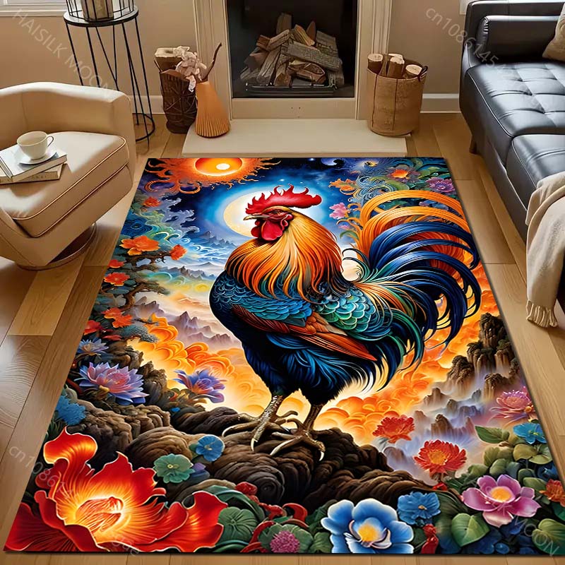 Beautiful Big Cock Flowers Print Carpet for Living Room Bedroom Sofa Doormat Decor Area Rugged Non-slip Floor Mat Large Size