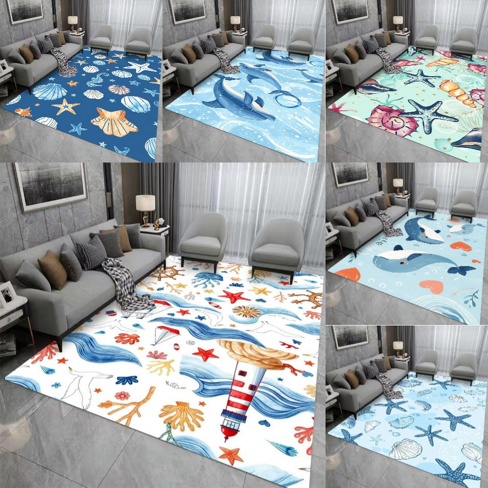 Starfish Shell Whale Ocean Pattern Carpet for Living Room Decor Children Play Soft Rug Bedroom Lounge Nursery Sofa Floor Mat