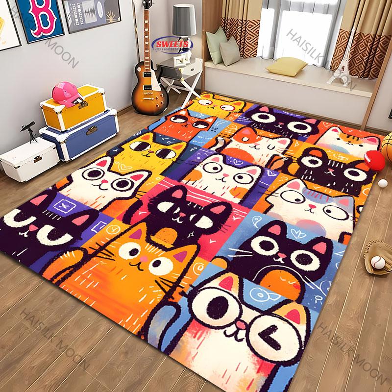 Personalize Cartoon Cat Collage Art Printed Carpet ! Anti-slip Sound Insulation, LivingRoom Bedroom Entrance Door Mat Sofa Rugs