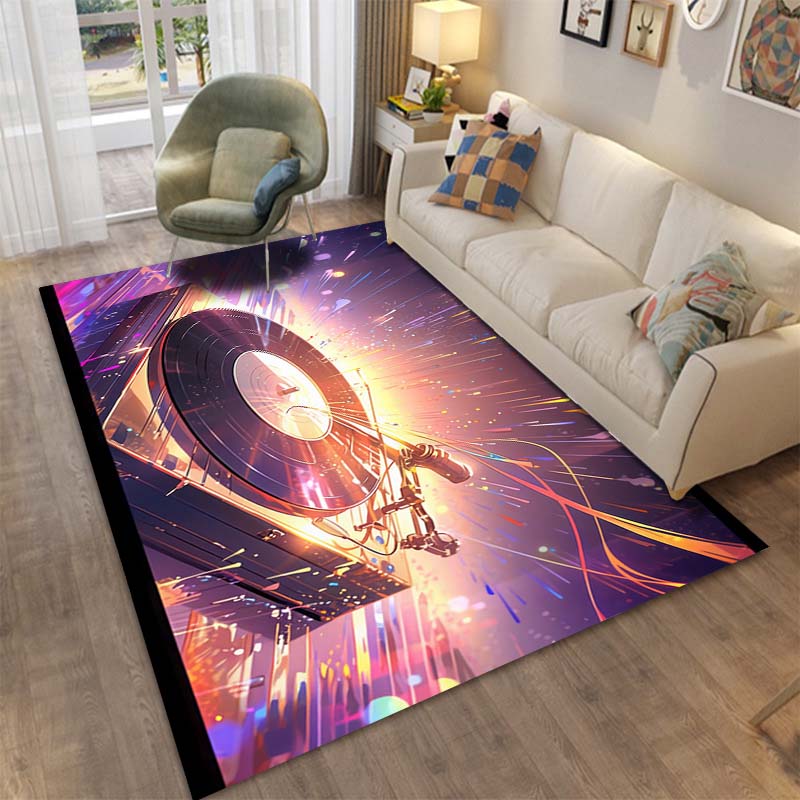 15 Sizes Retro Music Phonograph Record Area Rug Carpet for Living Room Bedroom Sofa Decorative Carpet,kid's Room Anti-skid Mat