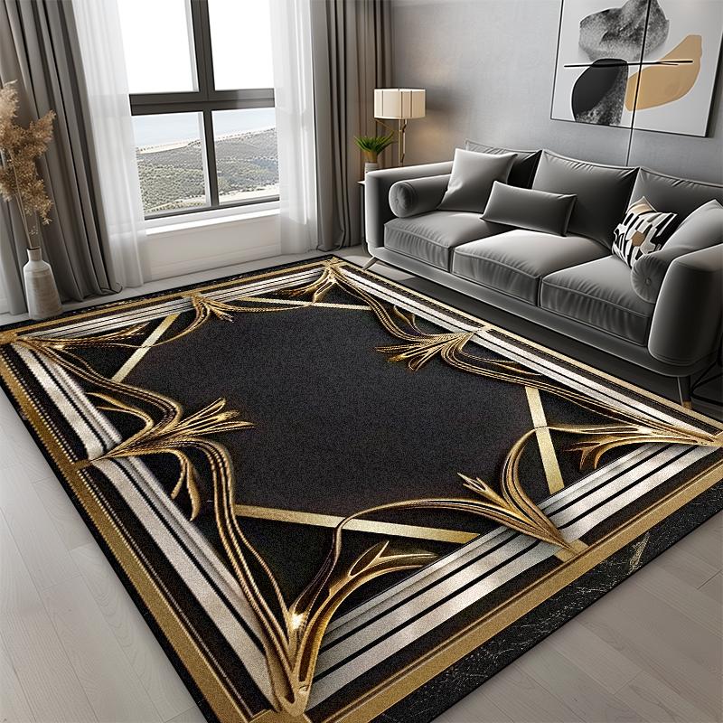 Boho Style Luxury Black Gold Carpets Living Room Bedroom Decoration High-grade Sofa Large Rugs Lounge Coffee Tables Mats Flannel