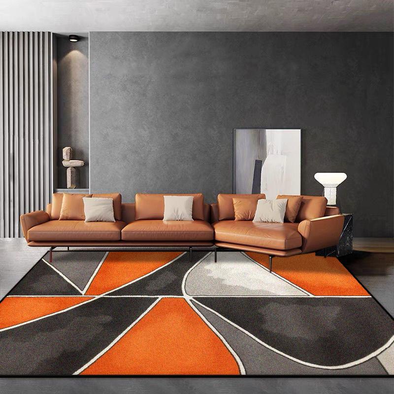 Nordic Orange Carpet for Living Room Light Luxury Geometry Decor Soft Easy Cleaning Rugs for Bedroom Home Large Area Floor Mat