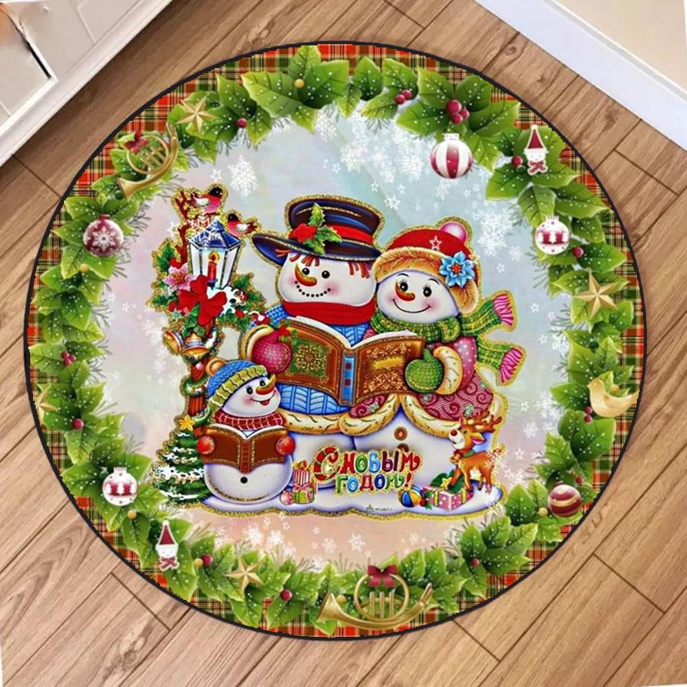 Christmas Teddy Bear Round Rug Non Slip Wear Resistant Living Room Bedroom Children's Room Holiday Decorative Floor Mat
