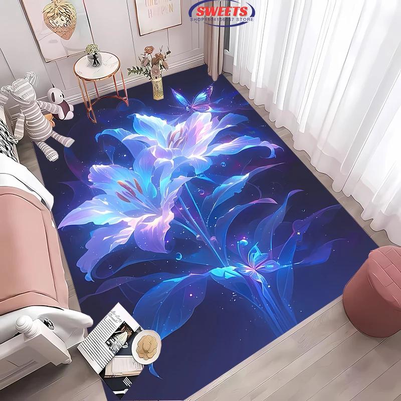Beautiful Lily Flower Large Carpet for Home Living Room Children's Bedroom, Sofa Doormat Kitchen Floor Rug, Anti-slip Decor Mat