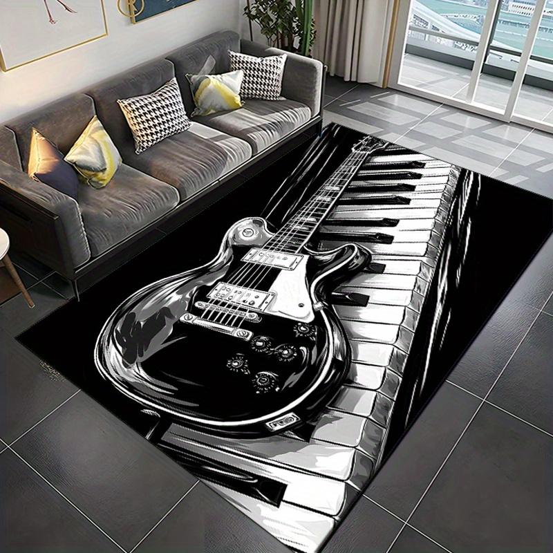 Luxury Velvet Guitar Piano Rug - Non-Slip Black/White Music Carpet for Bedroom & Living Room Decor