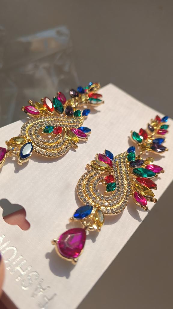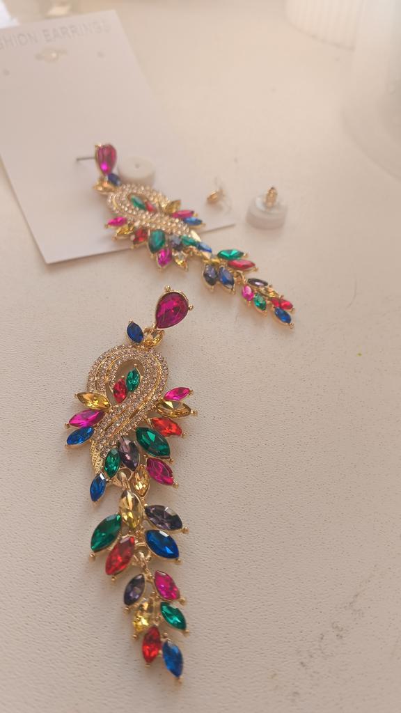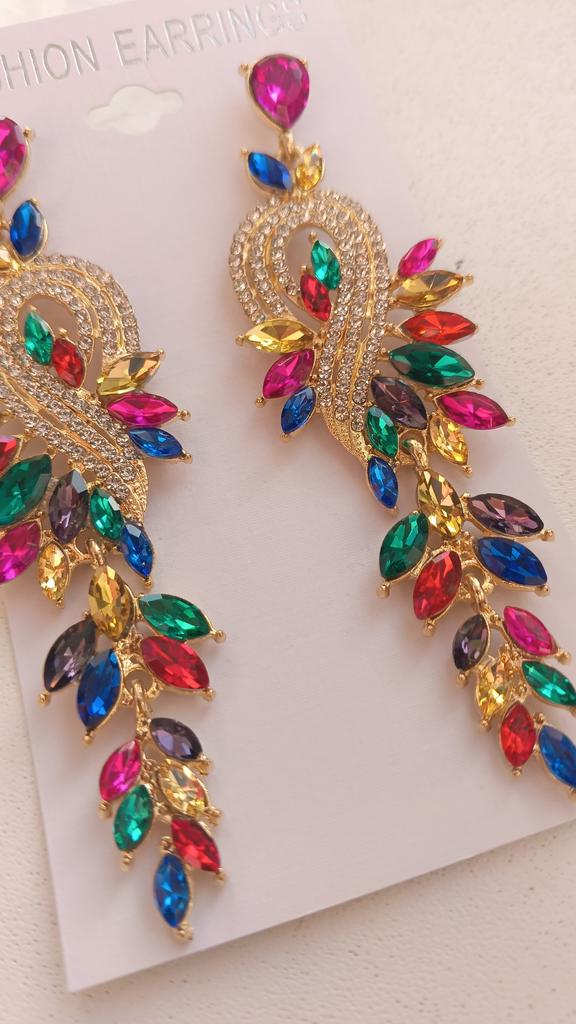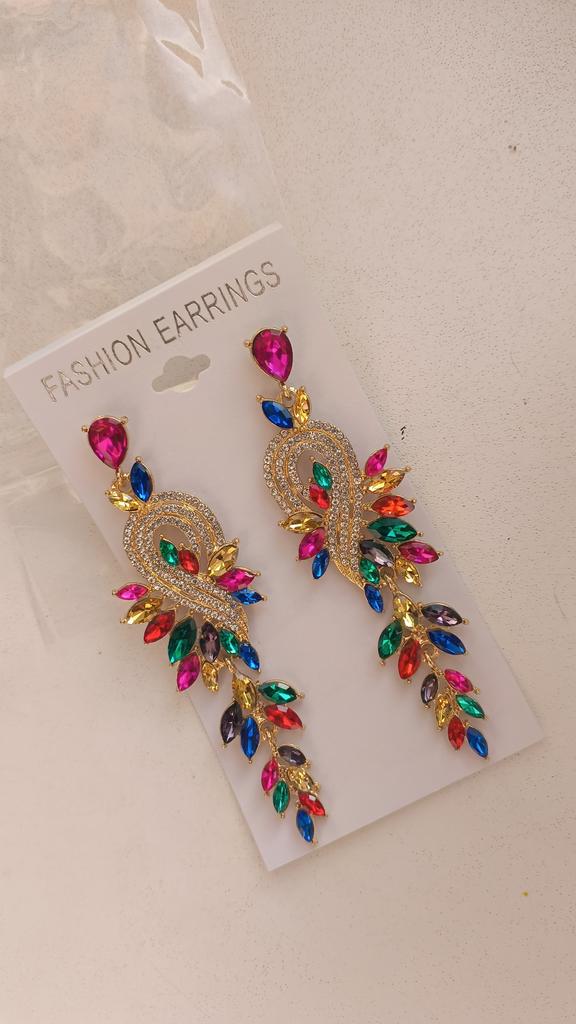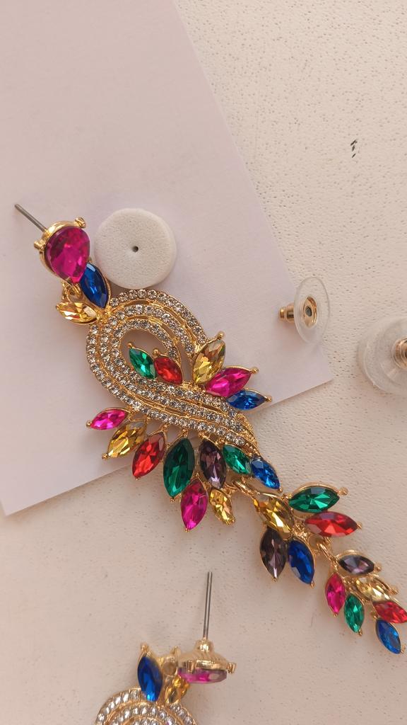 Small Face High-end Colored Glass Rhinestone Earrings Women, Personality Exaggerated Stud Earrings Earrings