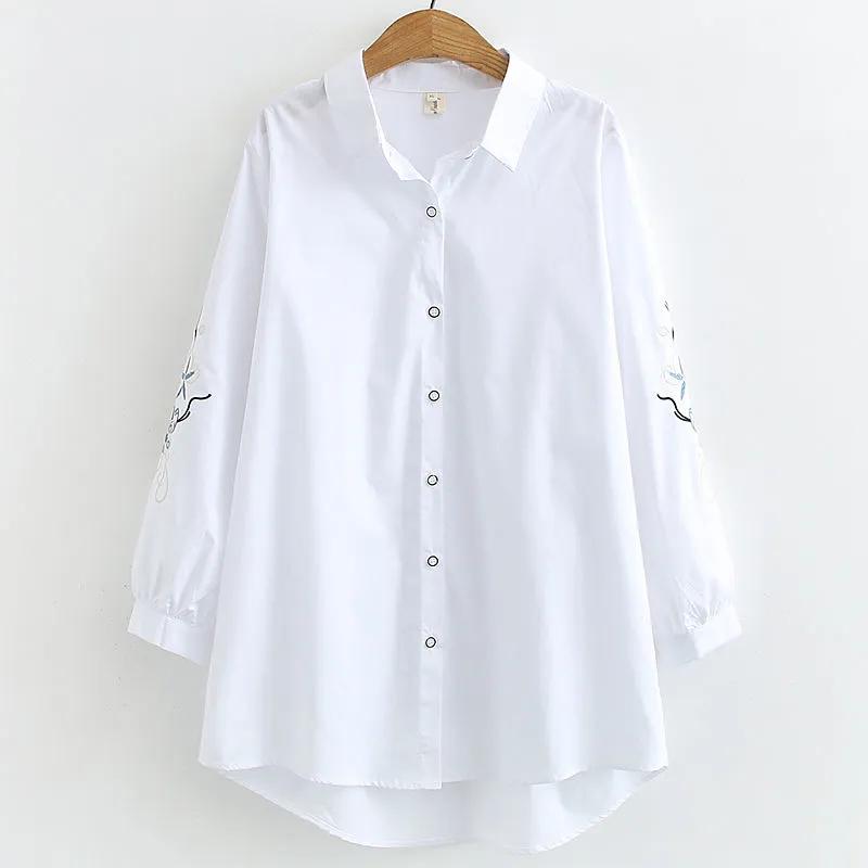 Mid-length Embroidered Plus Size Shirt, Pure Cotton Loose Long-sleeved Shirt, Women's Plus Fat Plus Bottoming Shirt