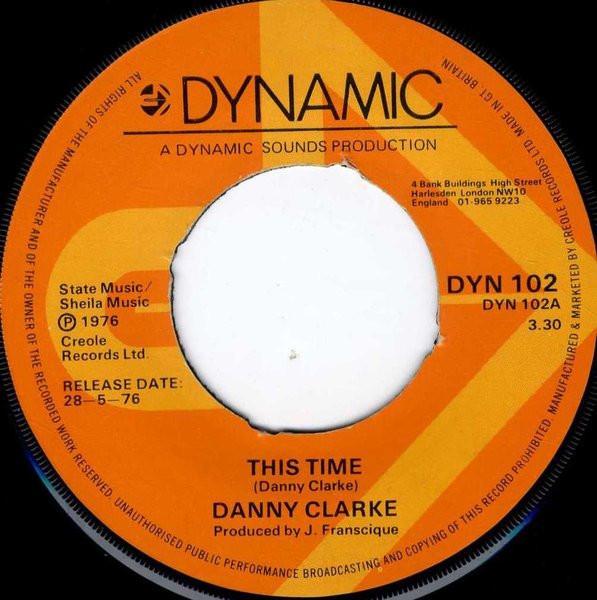 7inch Record DANNY CLARKE This Time DYN102 Dynamic Sounds 1976 UK Reggae Ska Dub Used