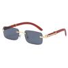 2pcs Rectangle Rimless Sunglasses Women Square Eyeglasses Luxury Brand Designer Retro Wooden Frame Gradient Sun Glasses UV400