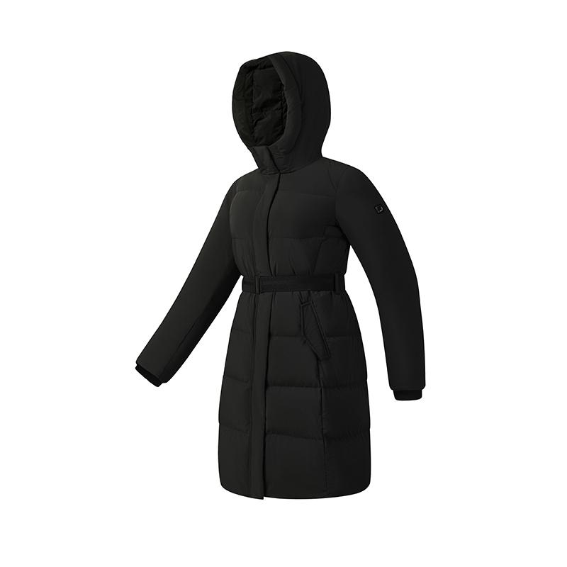 Fila Golf Series Fashion Classic Casual Sports Goose Down Winter Warm Protective Mid-Length Hooded Down Jacket Women Outerwear A11W545909FBK