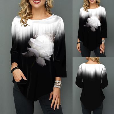 Floral Irregular Women Blouse Tee Ladies Long Sleeve Casual Loose S5xl Tshirt
