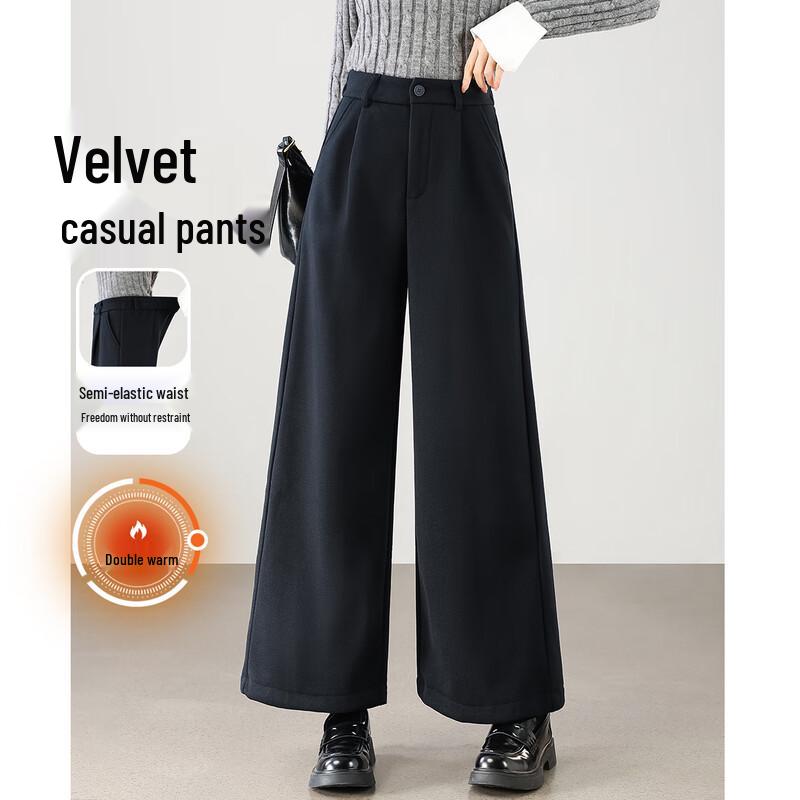 TERRE BLEUE Women's Fleece-Lined Wide-Leg Straight Casual Pants