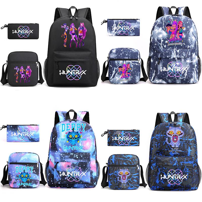 3Pcs/set Anime Printed Backpack with Shoulder Bag Pencil Case for Teenager Student Boy Girl School Bag Large Capacity Waterproof Bookbag Kid Gift