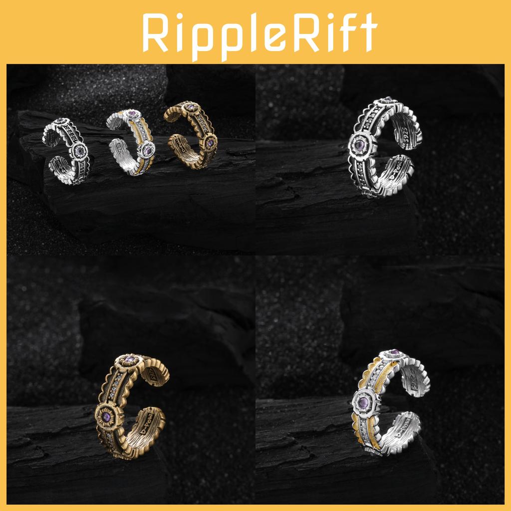 Elegant Korean Vintage Style Adjustable Open Copper Ring With Sparkling Zirconia For Women