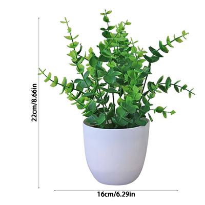 1Set Artificial Green Bonsai Eucalyptus Flower Potted Plant for Home Garden Table Decoration Indoor Bedroom Office Fake Plant