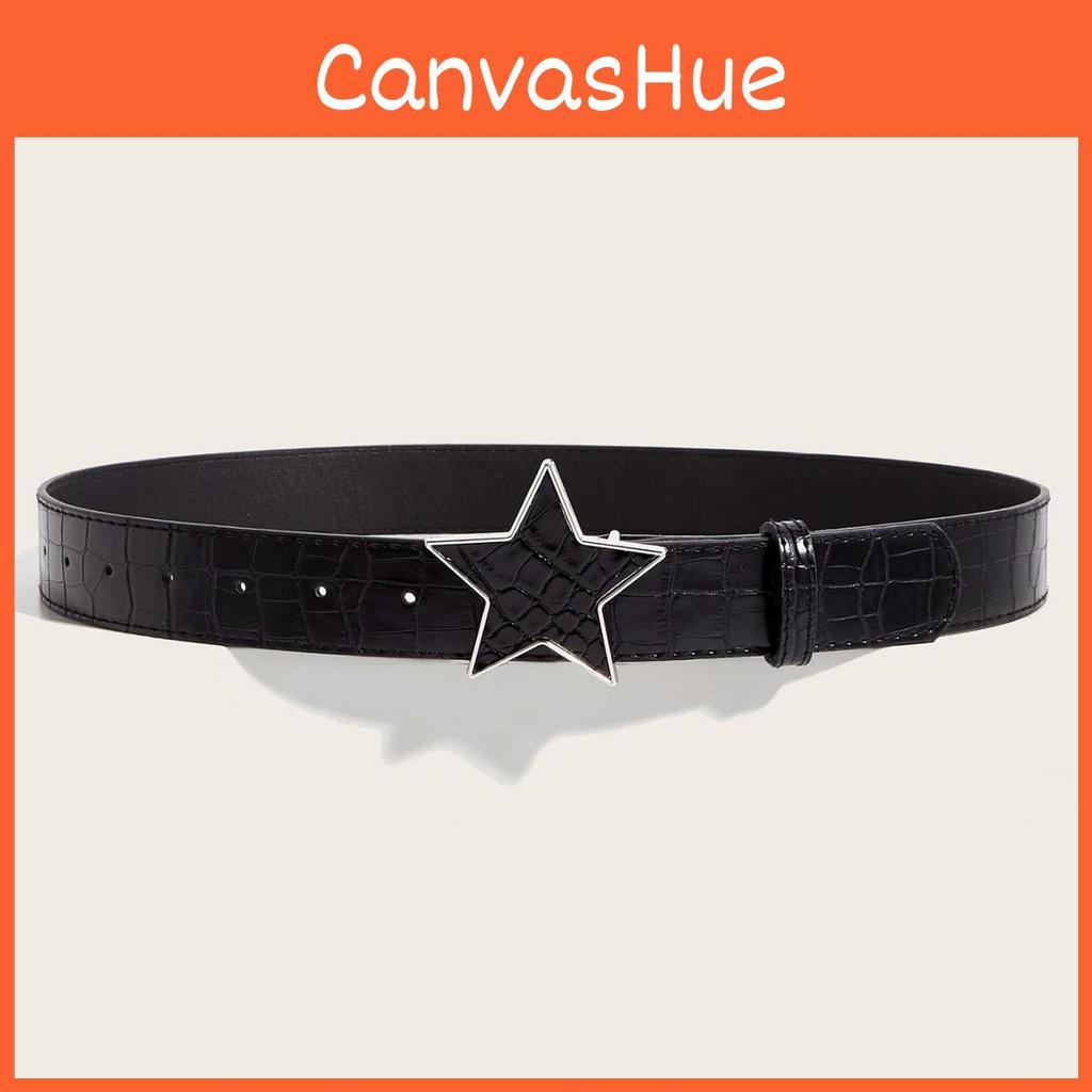 This fashion-forward leather belt features a high-quality PU material Size of 105cm, offering a sleek and durable design. The alloy buckle with a 3.3cm snap button adds a bold touch, featuring star-shaped embellishments for a distinctive look. Ideal for casual or streetwear outfits, it supports easy snap closure and enhances personal style. Wipe clean with a damp cloth to maintain its appearance.