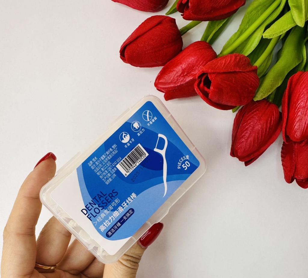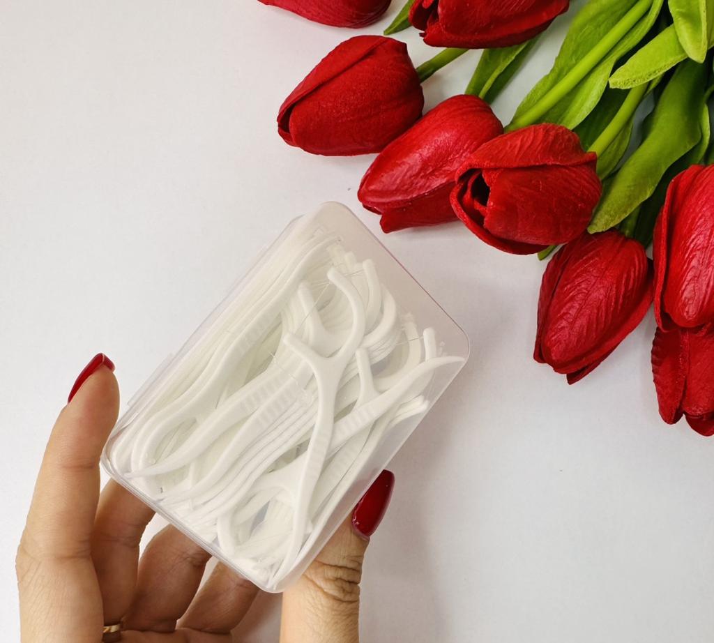 50pcs Count Floss Sticks with Sealed Storage Box Oral Care Portable Disposable Floss Stick, A Must-have for Daily Travel