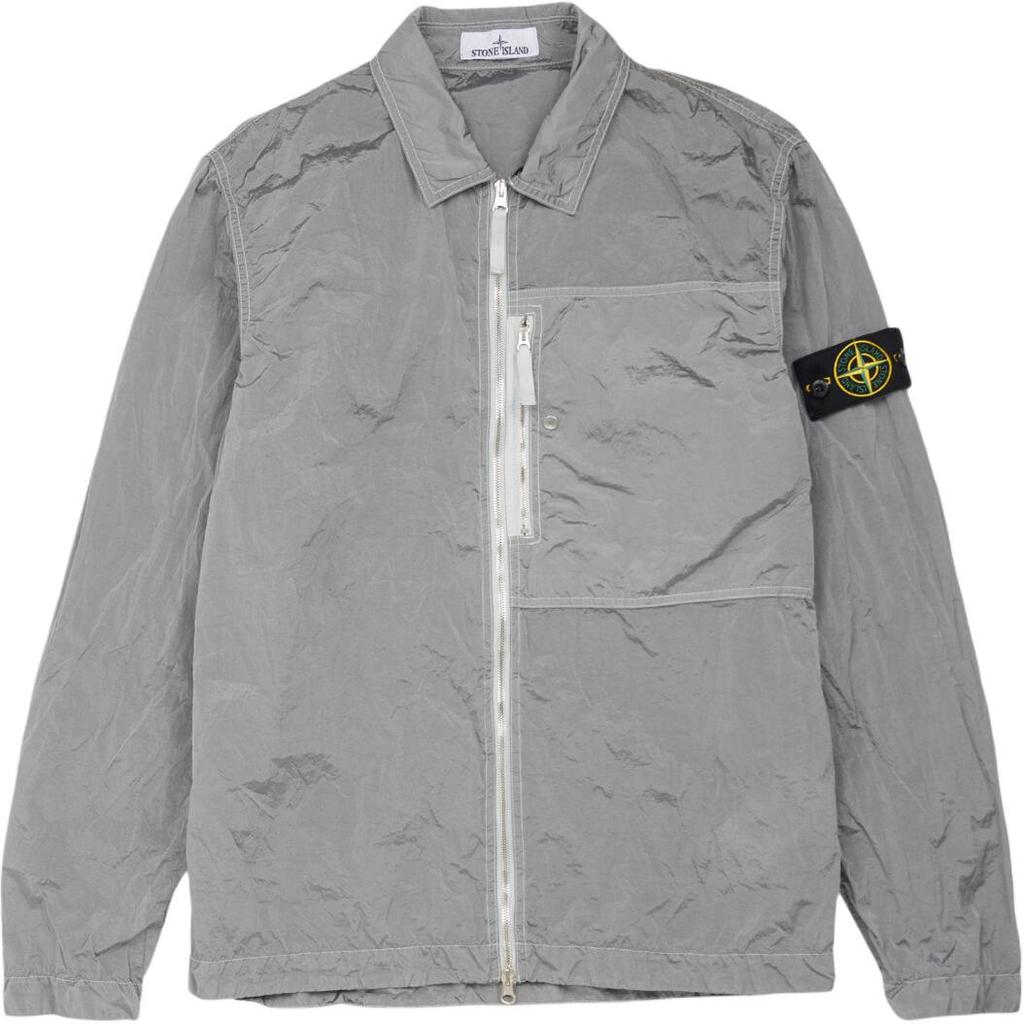 STONE ISLAND Ss25 Nylon Metal Solid Logo Patch Zip Long Sleeve Jacket Men Jackets Silver-Gray K1S1512000-05S0019-V0061
