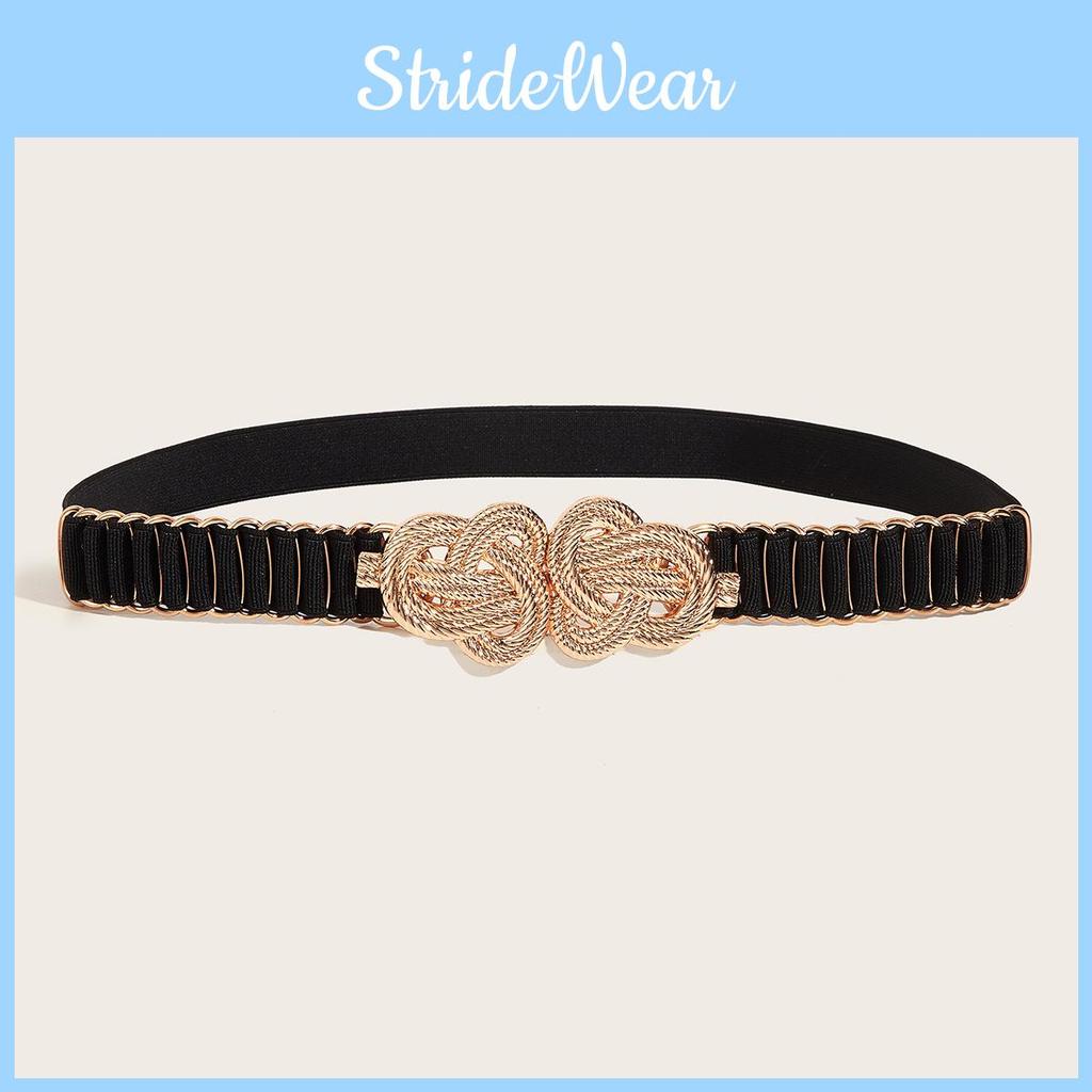 This elastic waist belt features a metallic alloy buckle that supports easy side clasping, offering a secure fit. Made of durable metal, it measures approximately 2cm wide, ideal for adding a stylish touch to dresses and long shirts. Its adjustable design ensures comfort during daily wear. Perfect for summer outfits, it can be worn to enhance casual or formal looks. Wipe clean with a damp cloth to maintain its shine.