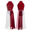 Girls Modern Lyrical Dance Dress Sleeveless Mock Neck Chiffon Costume with Rhinestones Color Block Side Split & Invisible Zipper