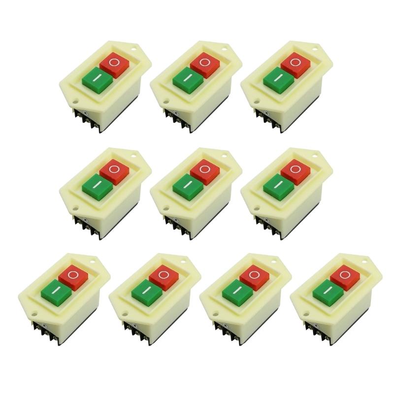 Push Button Switches Latching 3 Phase On/Offs Starts Stop Switches for Table Drill GrinderCutting Machine 10A AC380V