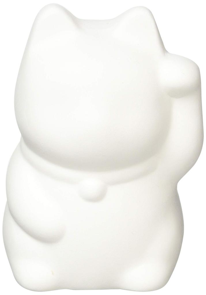Yakushigama Ceramic Maneki Neko Hand Piggy 10cm Warakuzukushi (Left Raised) Bank, White, Tall, (1051)