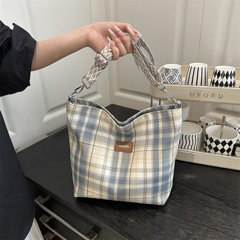 Summer Women's Bag Plaid Canvas Women's Tote Bag Large Capacity Women's Shoulder Bag Commuter Underarm Bag