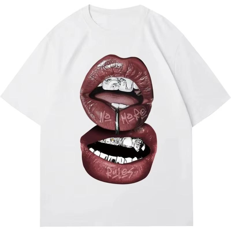 New Summer Trendy Brand Letter Pure Cotton Printing Men's and Women's Loose Short Sleeves Couple Crew Neck Short Sleeves