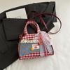 High-value Splicing Portable Small Fresh Denim Handbag Bag Bag Going Out Contrasting Colors Portable Autumn Women