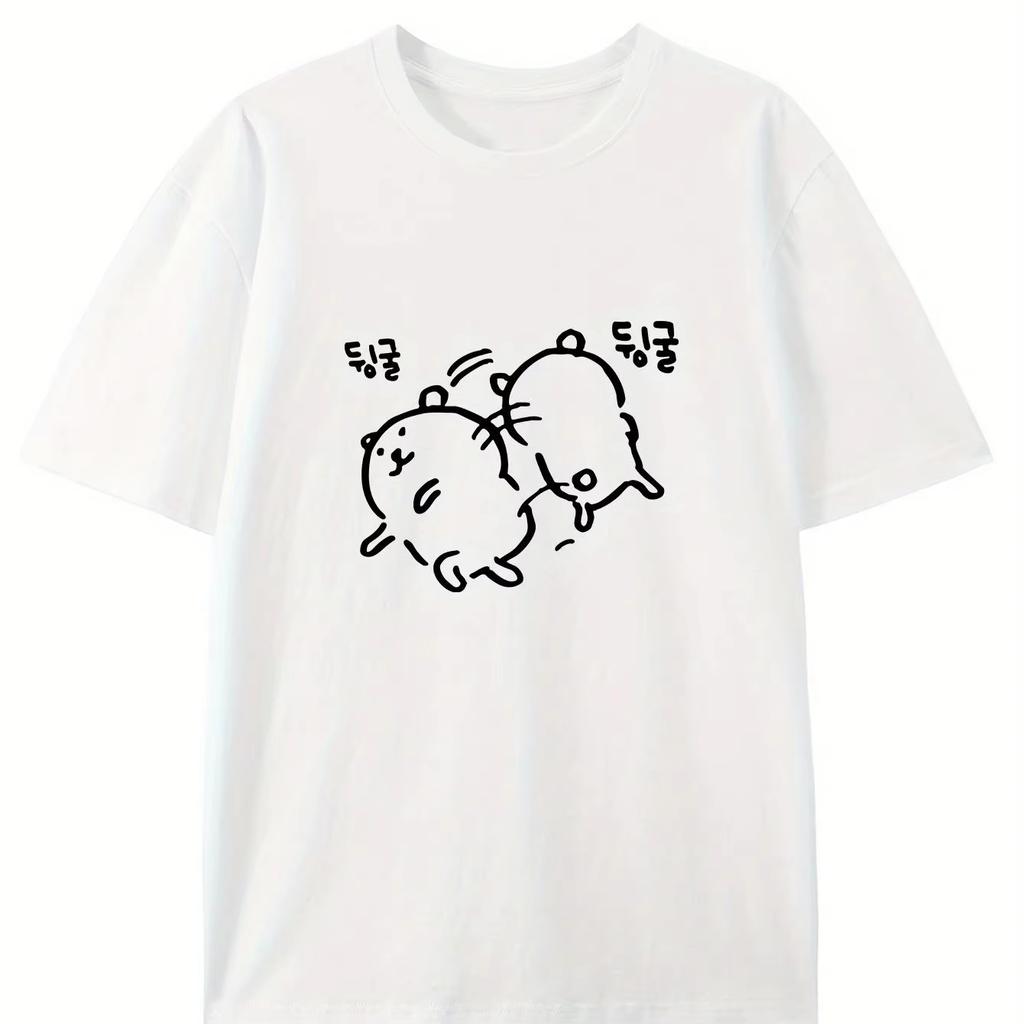 Authorized Self-deprecating Bear Korean Men's and Women's Casual Short-sleeved T-shirt Design Cartoon Bear Pattern Printi