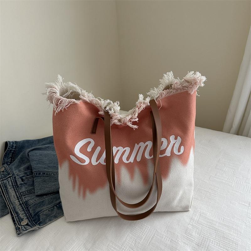 Large Capacity Fringed Bag Beach Bag Women's Shoulder Tote Bag Casual Lazy Wind Contrasting Color Handbag