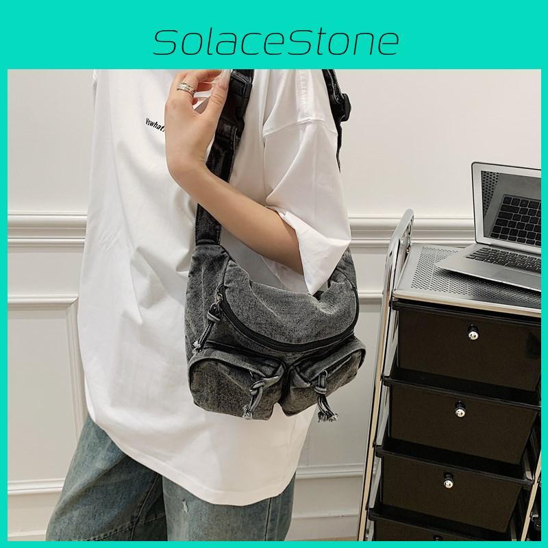 Denim Crossbody Bag For Women With Large Capacity And Zipper Closure For Casual Daily Use