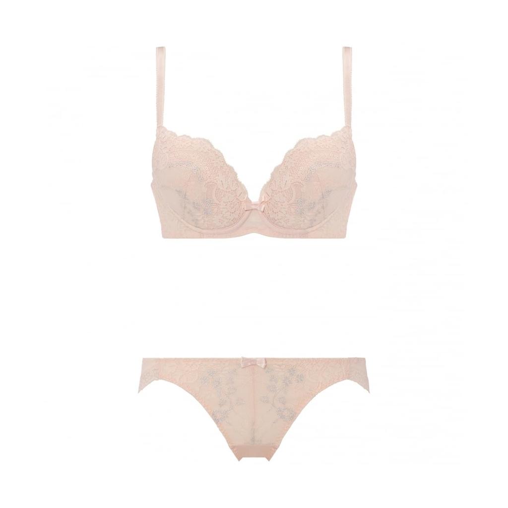 AMOSTYLE BY Triumph Entry Collection Cup Backless Bra Panty Twinkle M019 E65M 3/4 Bra, & Set, Flower, Women's, (Pink),