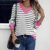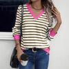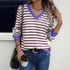 Womens Striped Long Sleeve Shirts V Neck Knit Tops Casual Fitted T Shirts Fall Outfits