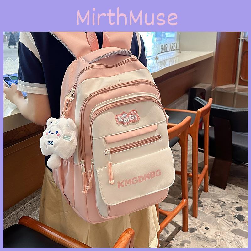 Kmgdmbg Letter Print Nylon School Backpack With Color Block Design And Air Cushion Straps For Students And Travelers