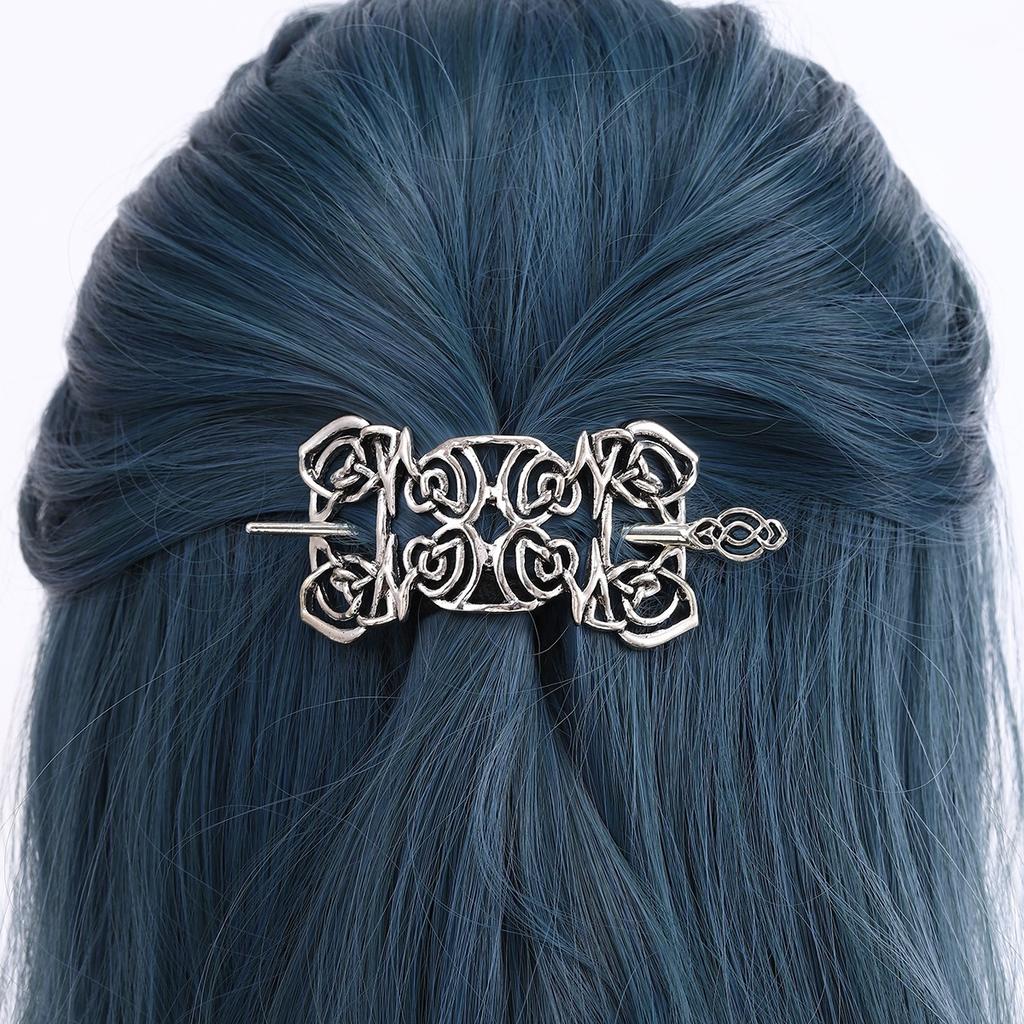 1pc Retro Silver Celtic Pattern Totem Design Hair Clip Niche Punk Style Patterned Metal Hair Clip Dark Themed Hair Accessory