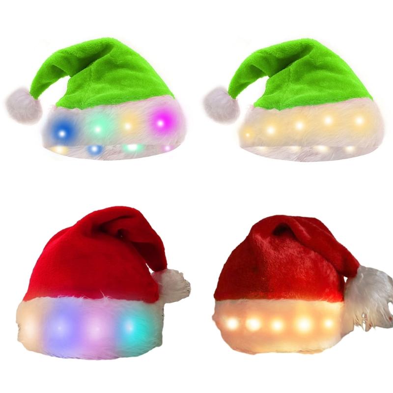 Pack of 5pcs Unisex LED Santa Hat Soft and Comfortable Pom Hats Headgears for Christmas Celebrations and Photo Props