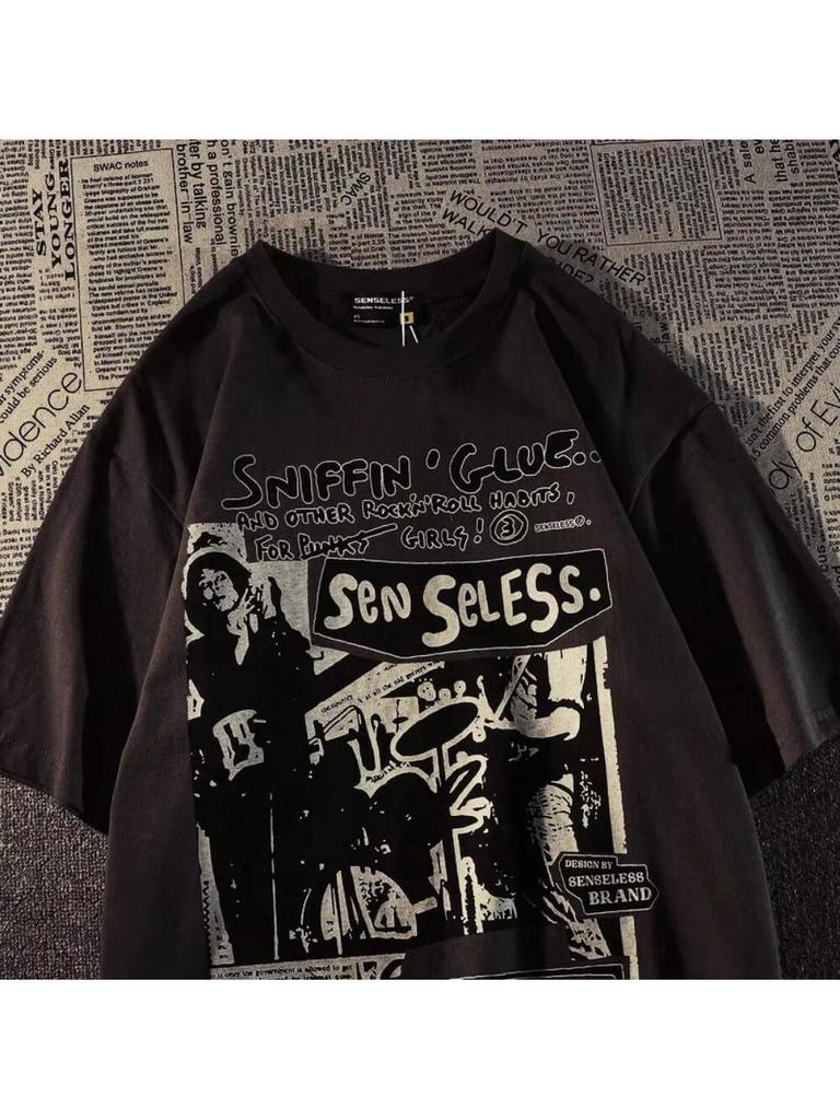 Female T Shirt Retro Short Sleeve T-Shirt Men's Loose American T-Shirt Oversized T-Shirts Print Kawaii Oversized Top Streetwear