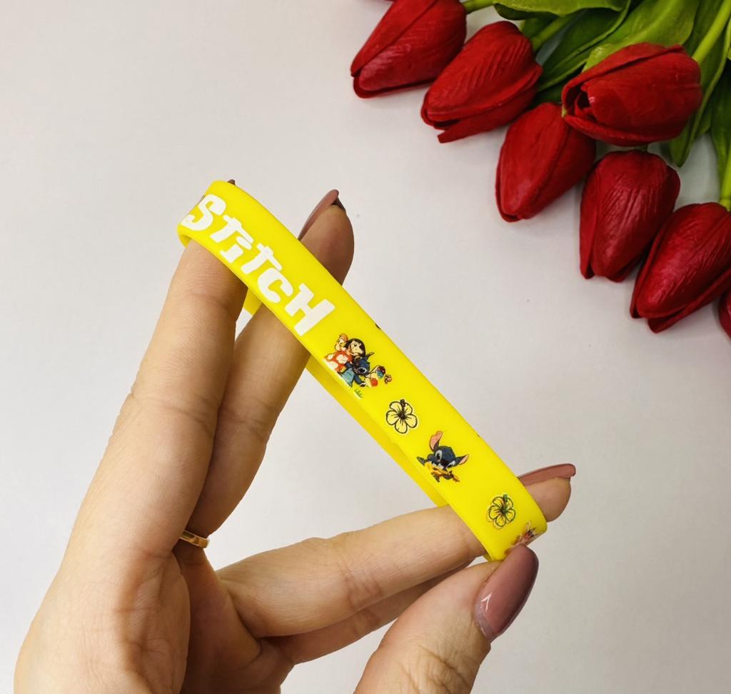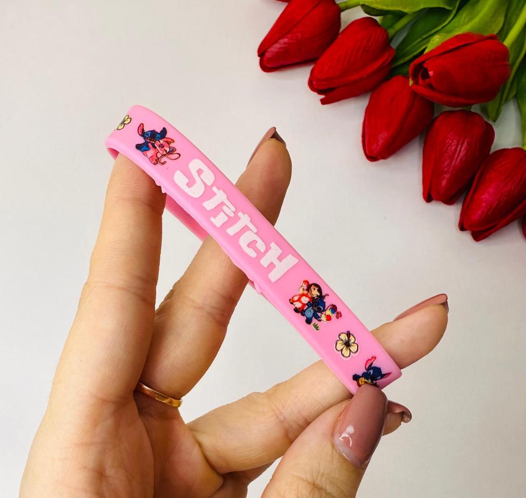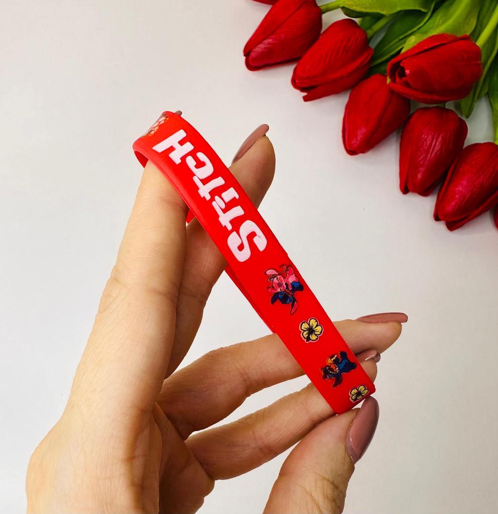 Colorful Design: The set includes a variety of vibrant colors such as pink, blue, green, yellow, and red. Stitch Theme: Each bracelet features graphics of the character Stitch along with tropical flowers and the name "Stitch" in a stylized font. Material: They are made of flexible and soft silicone, which makes them water-resistant and comfortable for daily use. Versatility: They are perfect as details for birthday parties, gifts for guests or simply to exchange with friends.