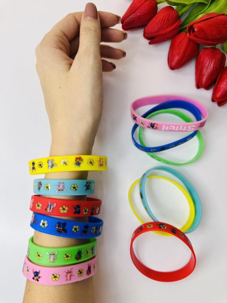 Silicone bracelets «Stitch» A bright and positive accessory for fans of the cartoon. 🔸Design: the set includes many bright colors (pink, green, blue, yellow) with recognizable Stitch prints. 🔸Material: soft hypoallergenic silicone — sits comfortably on the wrist, resistant to water and sweat. 🔸Application: can be worn individually or as a set. Excellent as a cute gift or a way to boost your mood during training.