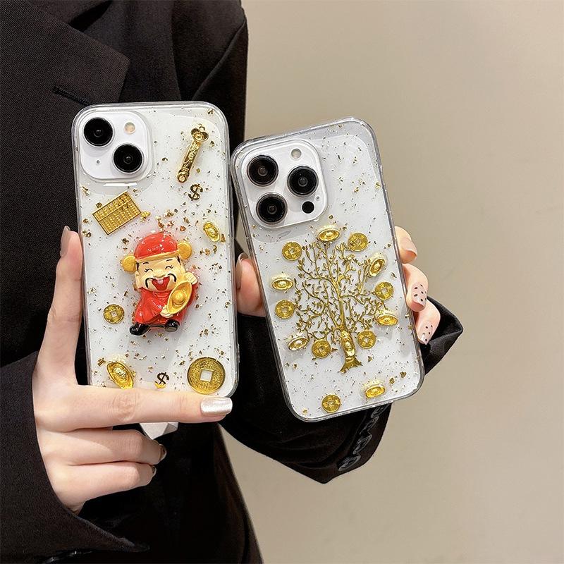 New Year's Money Tree God of Wealth Mobile Phone Case for Apple 16 Promax Transparent Glue for IPhone 17 Yuan Bao Qian