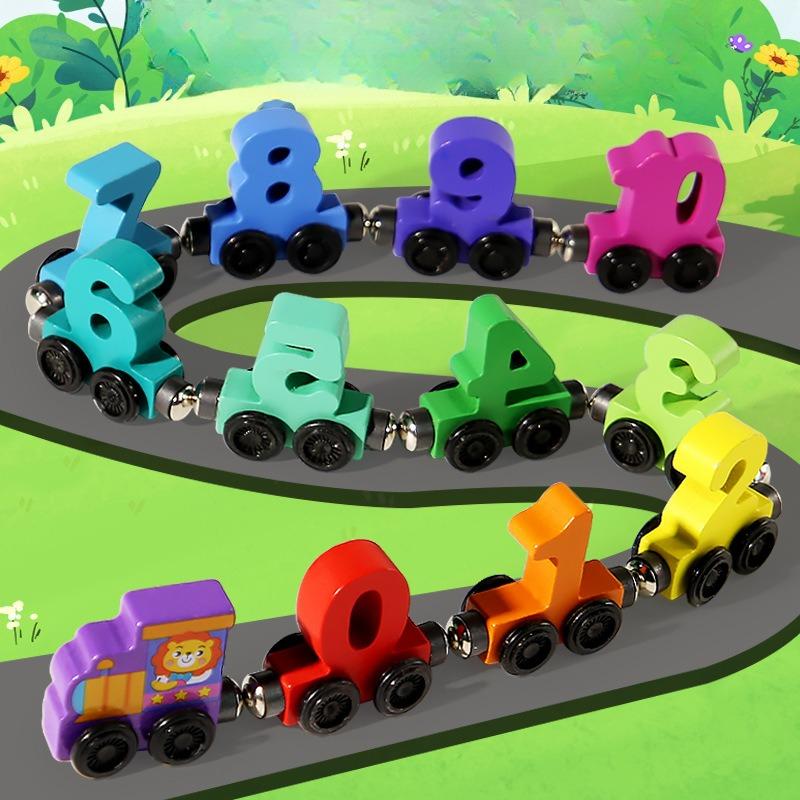 Children'S Wooden Magnetic Digital Train Building Block Assembly Car Baby Enlightenment Early Education Digital Cognitive Educational Toys