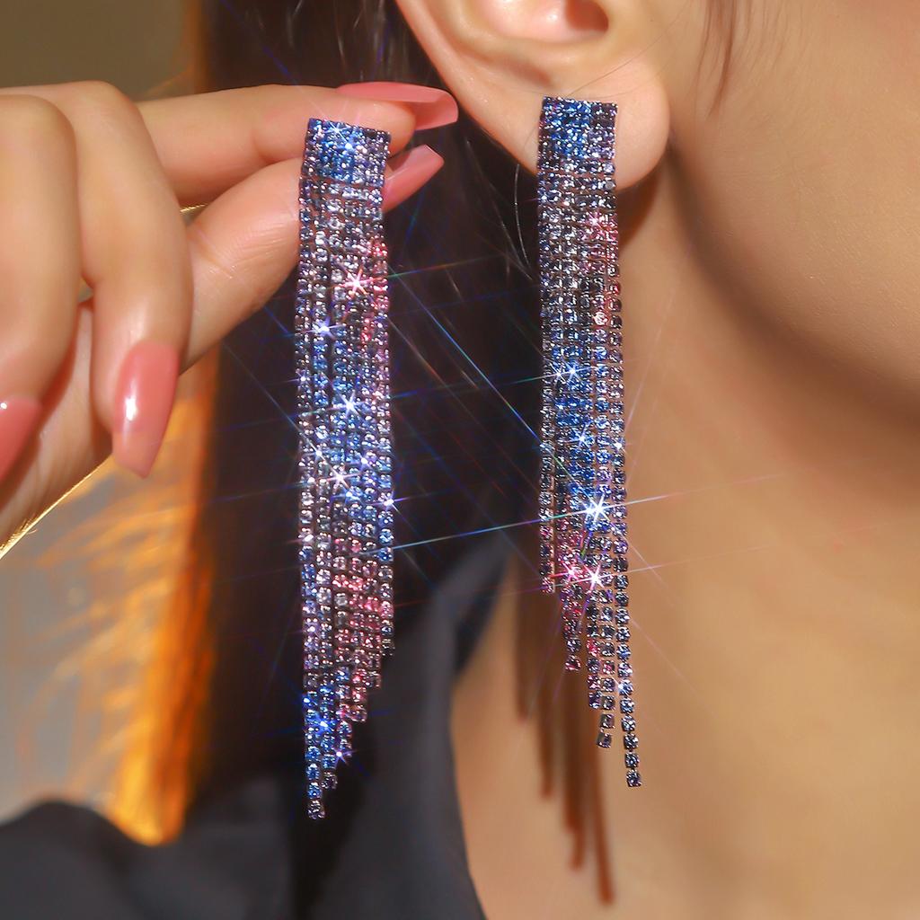 Long Tassel Earrings with a Shiny Temperament Full of Diamonds