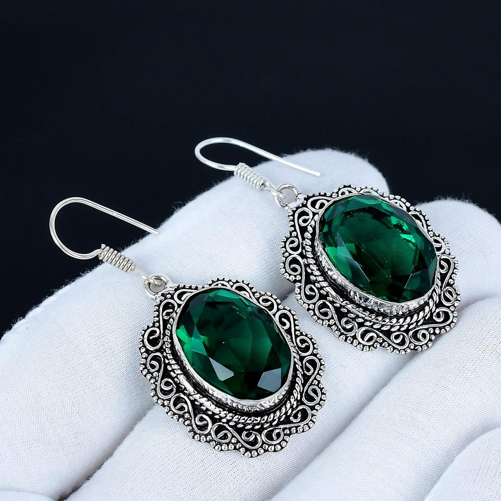 Green Tourmaline Gemstone Earrings, 925 Sterling Silver Earrings, Handmade Silver Earrings For Gift, Tourmaline Dangle Drop Earrings For Love Gift