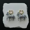 Exaggeration Stereoscopic Small Horse Pendant Earrings For Women Creativity Cute Animal Necklace Charm Jewelry Holiday Gift